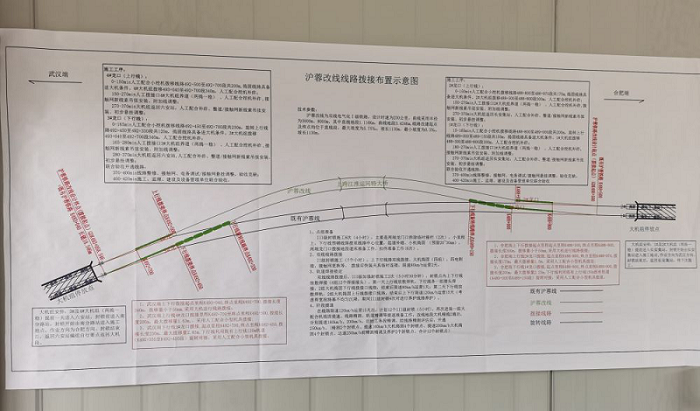 工程地點(diǎn)位于安徽省合肥市肥西縣,這是國(guó)內(nèi)首例高鐵雙線撥接作業(yè),它讓原有的高鐵線“拐了一個(gè)彎”,改線至新建滬蓉鐵路線上。