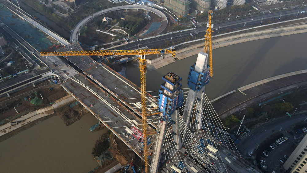 當(dāng)日,由中鐵四局承建的引江濟淮工程江淮溝通段金寨南路橋主塔封頂。該橋跨越引江濟淮工程航道,全長635米,設(shè)計為獨塔斜拉橋,此次封頂?shù)闹魉?12米。引江濟淮工程溝通長江、淮河兩大水系,是我國跨流域、跨省重大戰(zhàn)略性水資源配置和綜合利用工程。