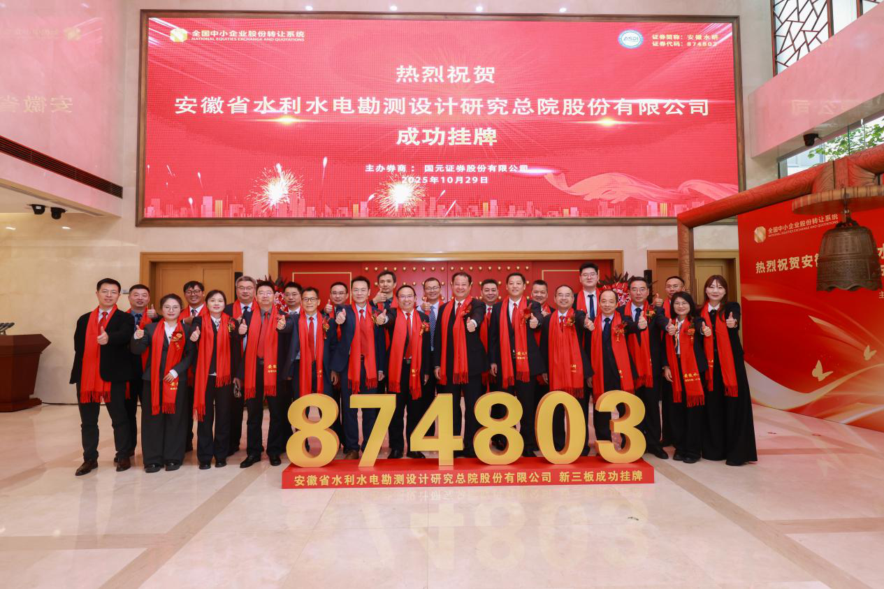 從佛子嶺水庫到淠史杭灌區(qū),從淮河上的 “三峽工程” ——臨淮崗洪水控制工程到安徽基礎(chǔ)設(shè)施 “一號工程” 引江濟(jì)淮工程,安徽水研數(shù)十年如一日,始終緊跟國家水利基礎(chǔ)設(shè)施建設(shè)與生態(tài)文明建設(shè)導(dǎo)向,長期服務(wù)安徽水利頂層規(guī)劃論證,深耕水利水電勘測設(shè)計領(lǐng)域,是區(qū)域水利建設(shè)的中堅力量。此次登陸新三板,安徽水研將借助全國股轉(zhuǎn)公司這一國家級平臺,進(jìn)一步匯聚優(yōu)質(zhì)資源、激活發(fā)展新動能,在規(guī)范治理中提升核心競爭力,在資本運作中拓寬發(fā)展空間,深刻踐行 “節(jié)水優(yōu)先、空間均衡、系統(tǒng)治理、兩手發(fā)力” 的新時期治水思路,以資本市場為依托,書寫水利事業(yè)高質(zhì)量發(fā)展的新華章。