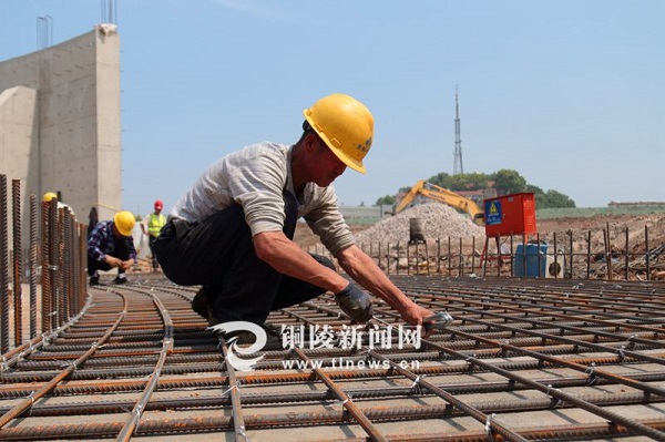 5月2日,記者在引江濟(jì)淮工程樅陽樞紐節(jié)制閘施工現(xiàn)場看到,大型挖掘機(jī)、工程運(yùn)輸車等大型機(jī)械和施工人員正緊張有序作業(yè)。正在和工友們一起用鐵絲綁扎雷諾護(hù)墊,鋪設(shè)防沖槽的瓦工何池玉告訴記者,他來自安慶市迎江區(qū),今年因疫情影響沒有到外省務(wù)工,而是選擇參與到引江濟(jì)淮工程樅陽樞紐的建設(shè)?!斑@個工程重大,質(zhì)量要求也高,工期又很緊,最近一段時間大家都是加班加點地在工作,‘五一’期間沒有一個回家的,確保按時按質(zhì)按量地完成每一項工作?!?/span>