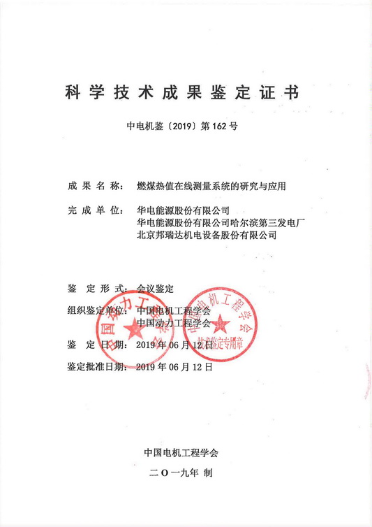 | 燃煤熱值在線測量系統(tǒng)鑒定 | |